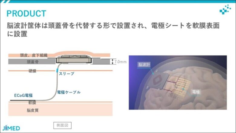 投影資料より、JiMEDによる小型脳波計の埋植イメージ。(提供:JiMED)