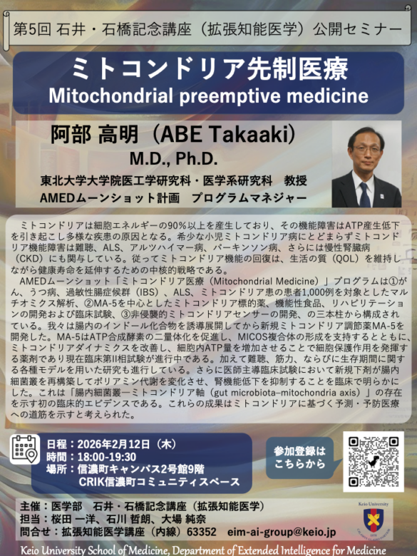 【2月12日開催】第5回 石井・石橋記念講座(拡張知能医学)公開セミナー「ミトコンドリア先制医療」